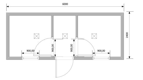 Блок-Контейнер с двумя перегородками и двумя окнами модель: РС-Б06 6.0 х 2.4 х 2.5