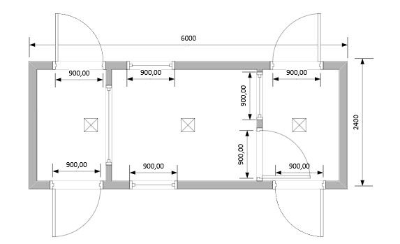 Блок-Контейнер с двумя проходными и помещением для охранника модель: РС-К03 6.0х2.4х2.6