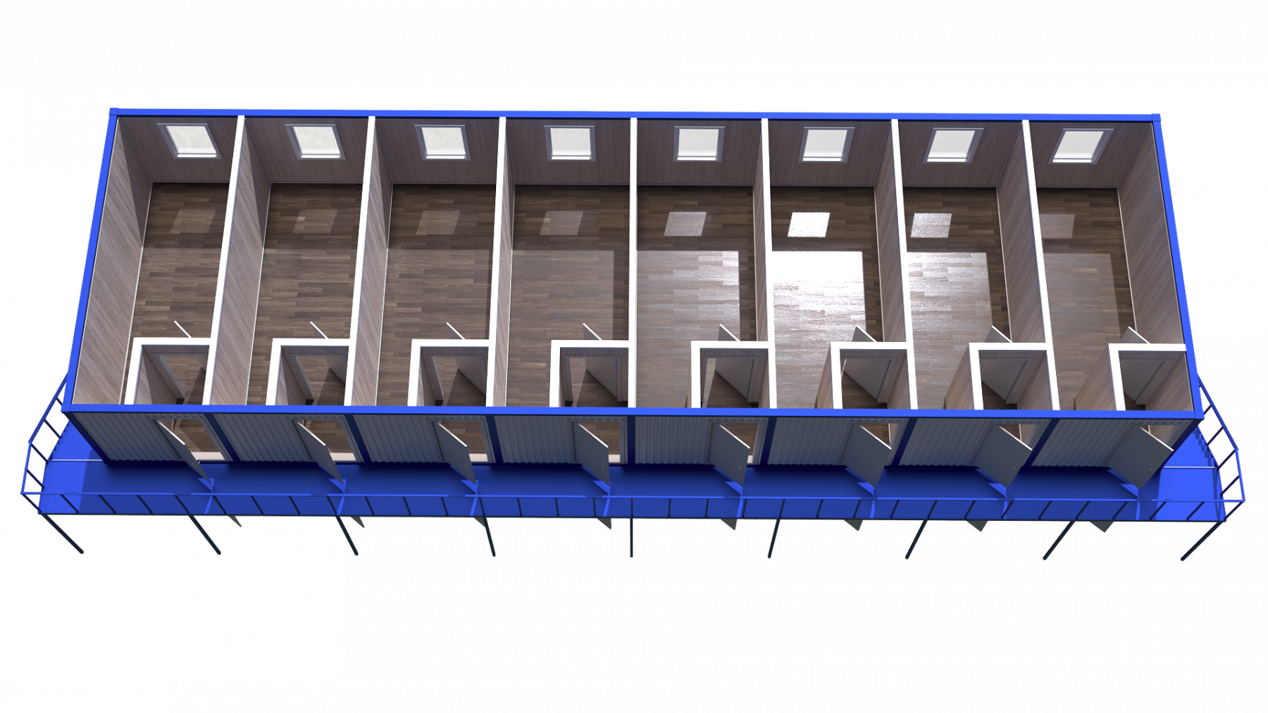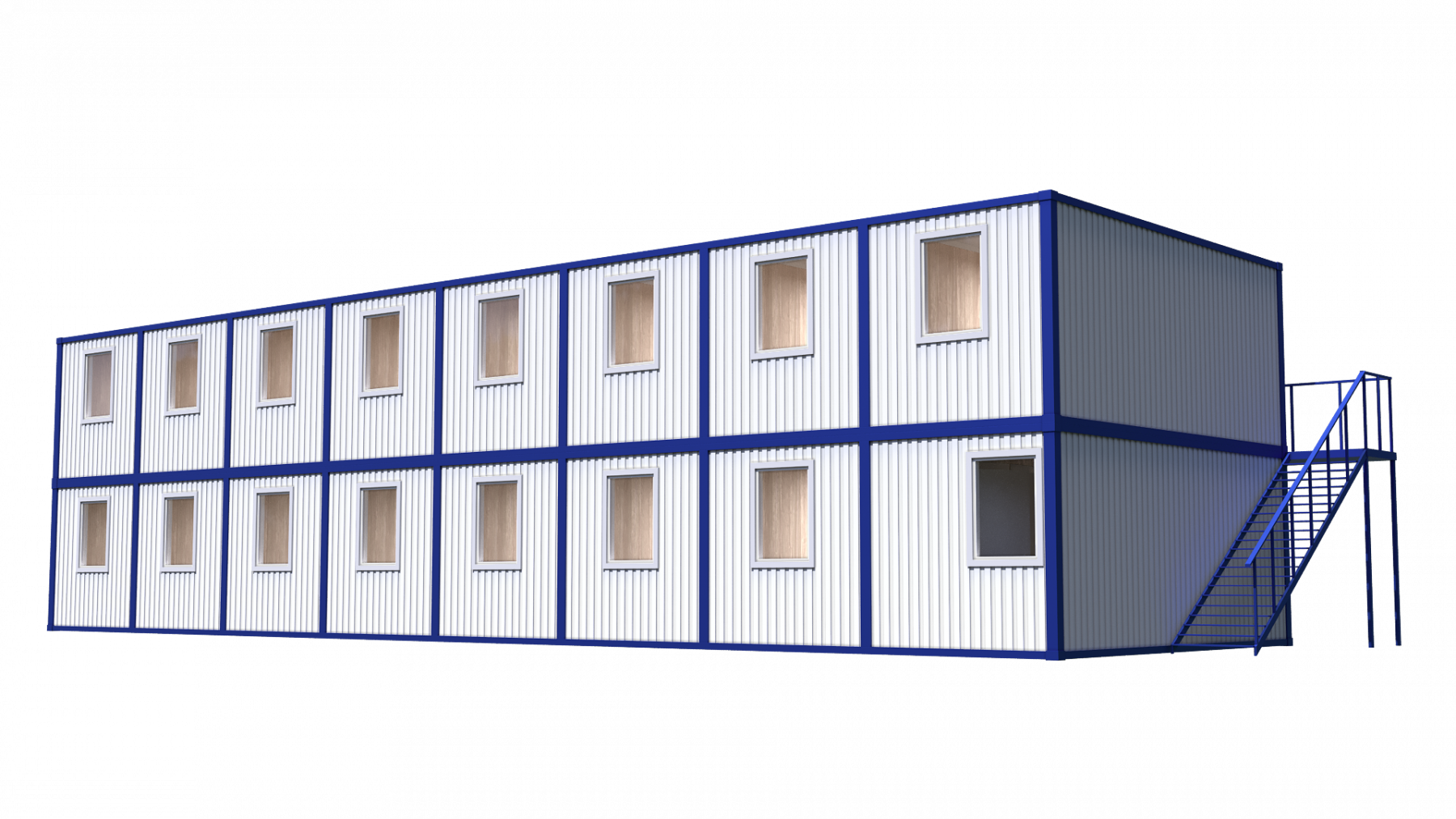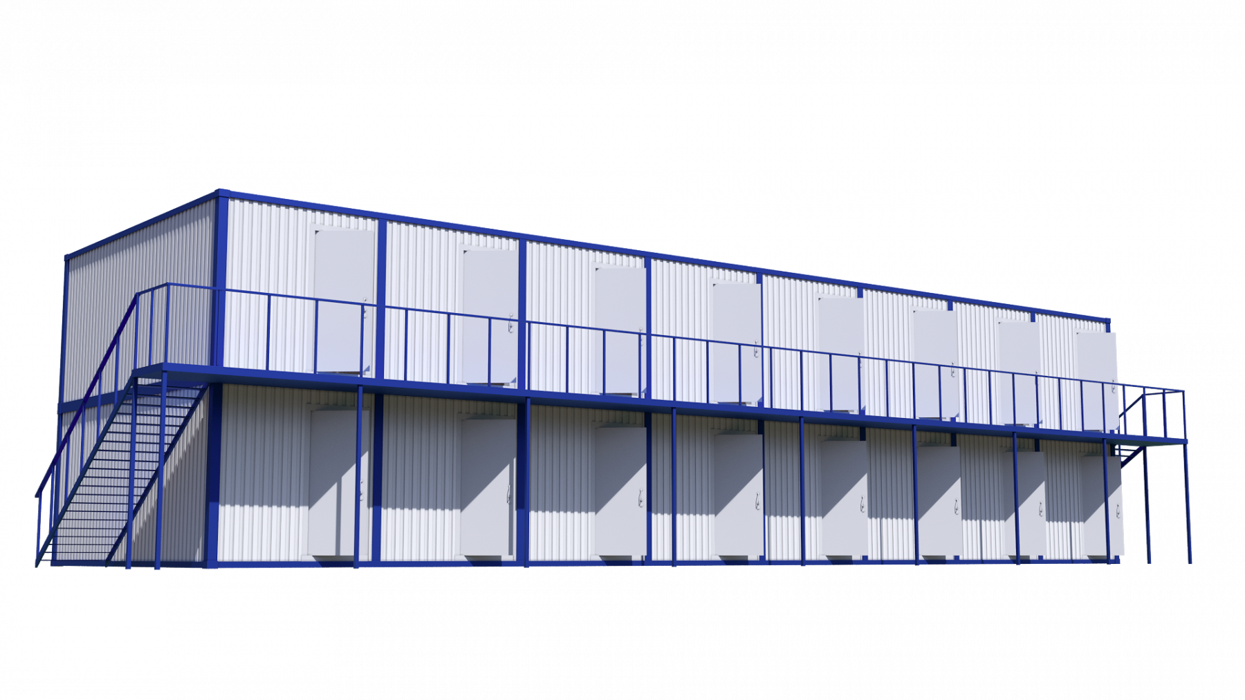 Модульное здание для проживания сотрудников с тамбуром в 2 этажа Модель: РС-М05 6.0 х 19.2 х 5.2