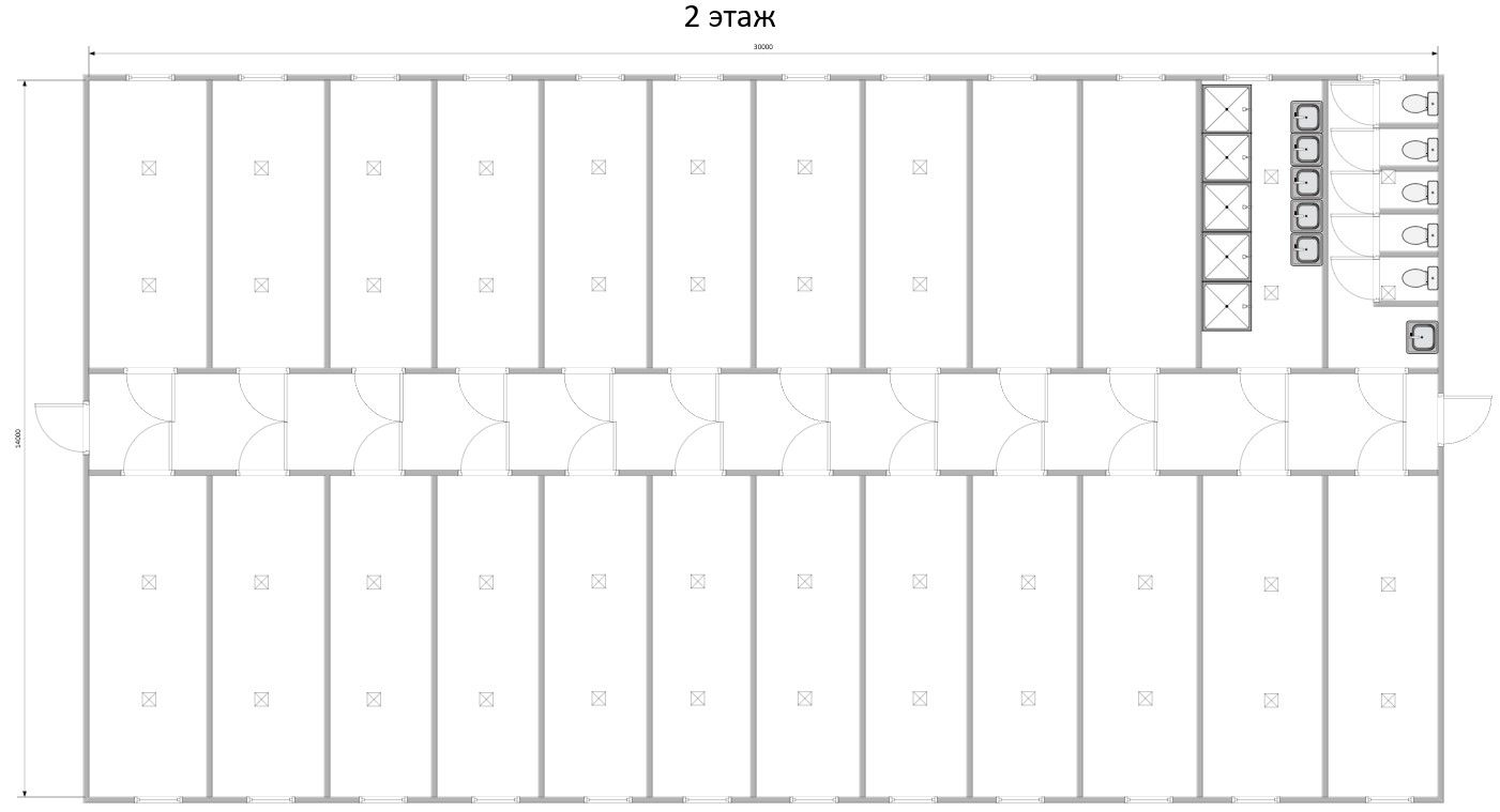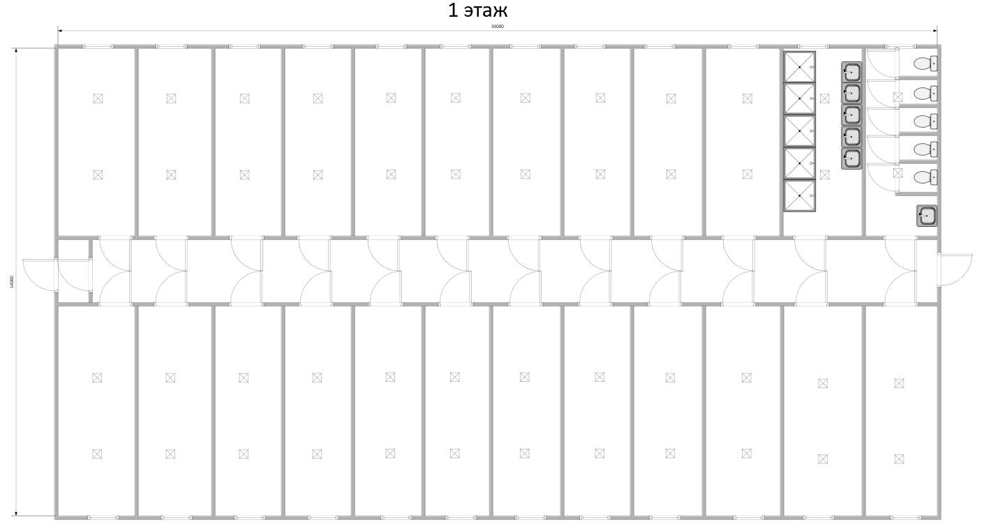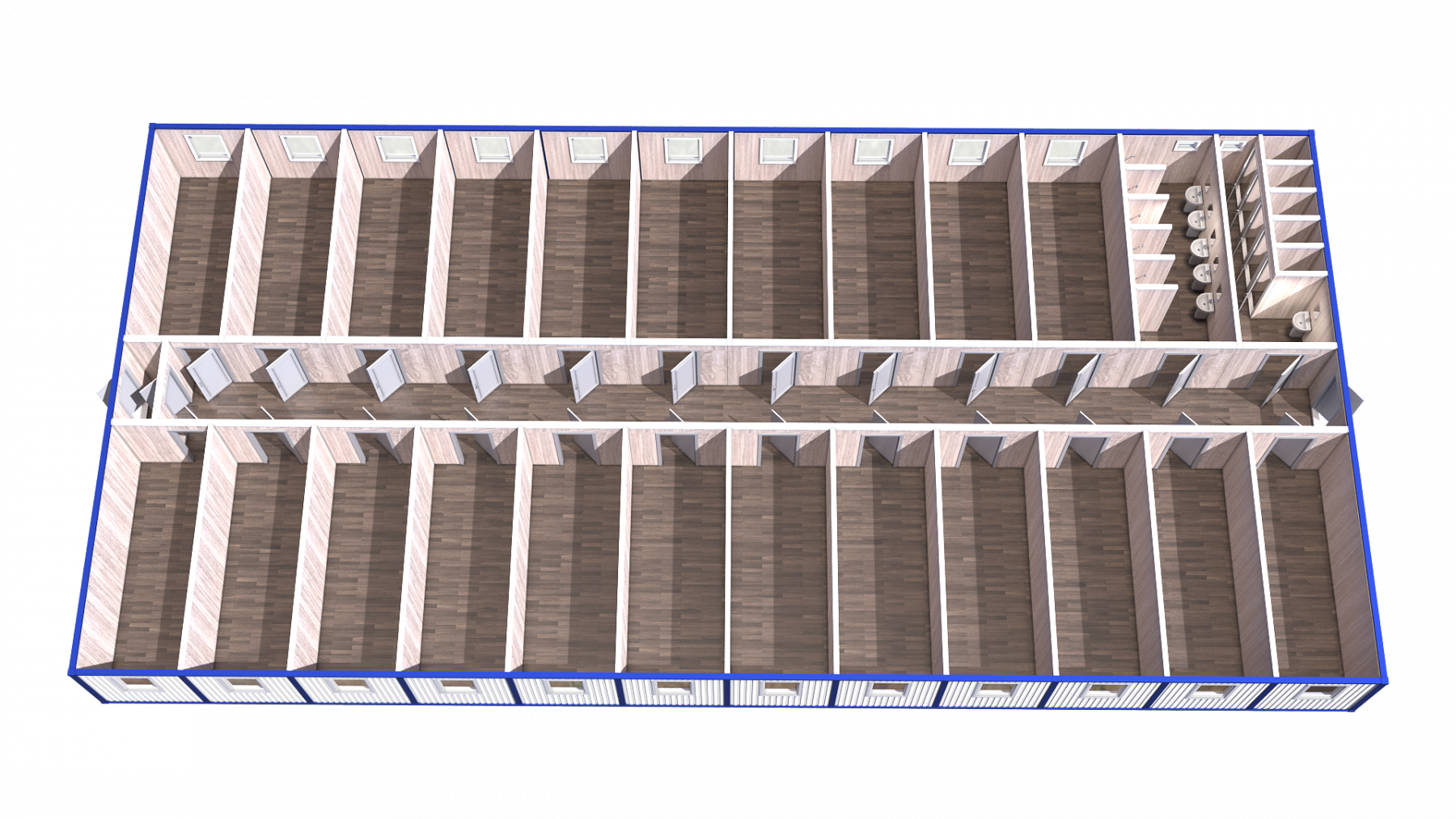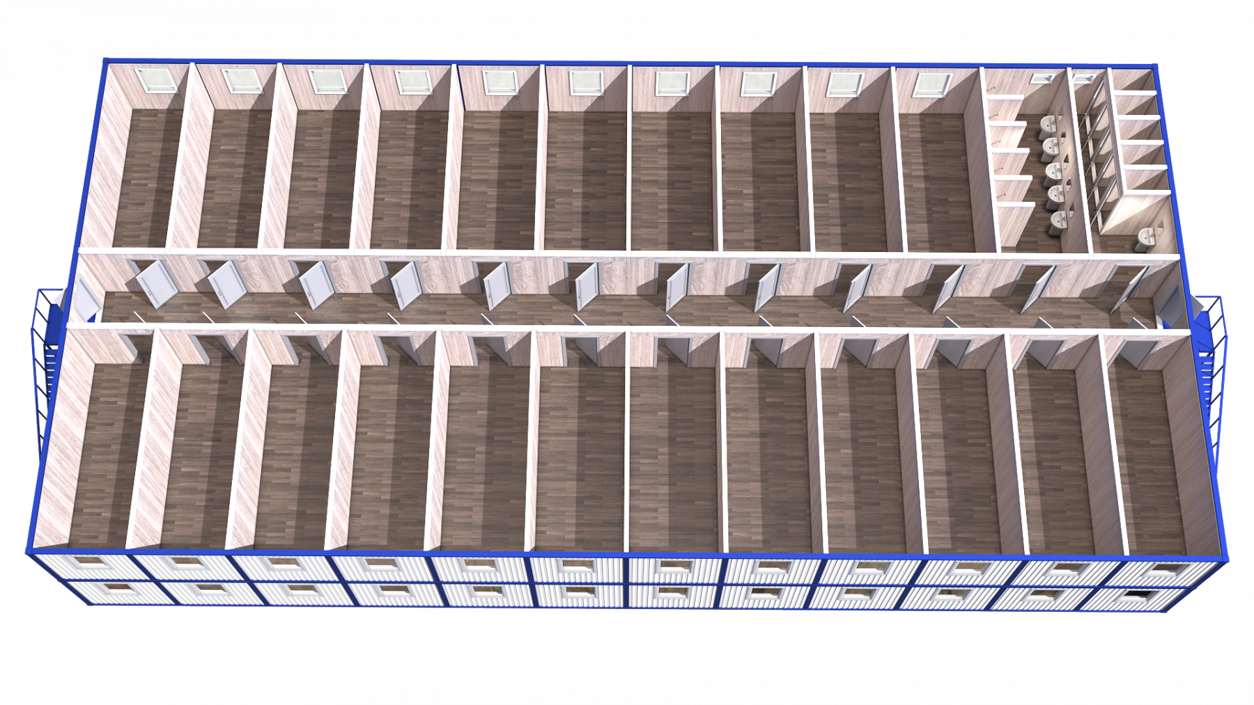 Модульное здание общежитие на 88 человек в 2 этажа Модель: РС-М07 14.0 х 28.8 х 5.2