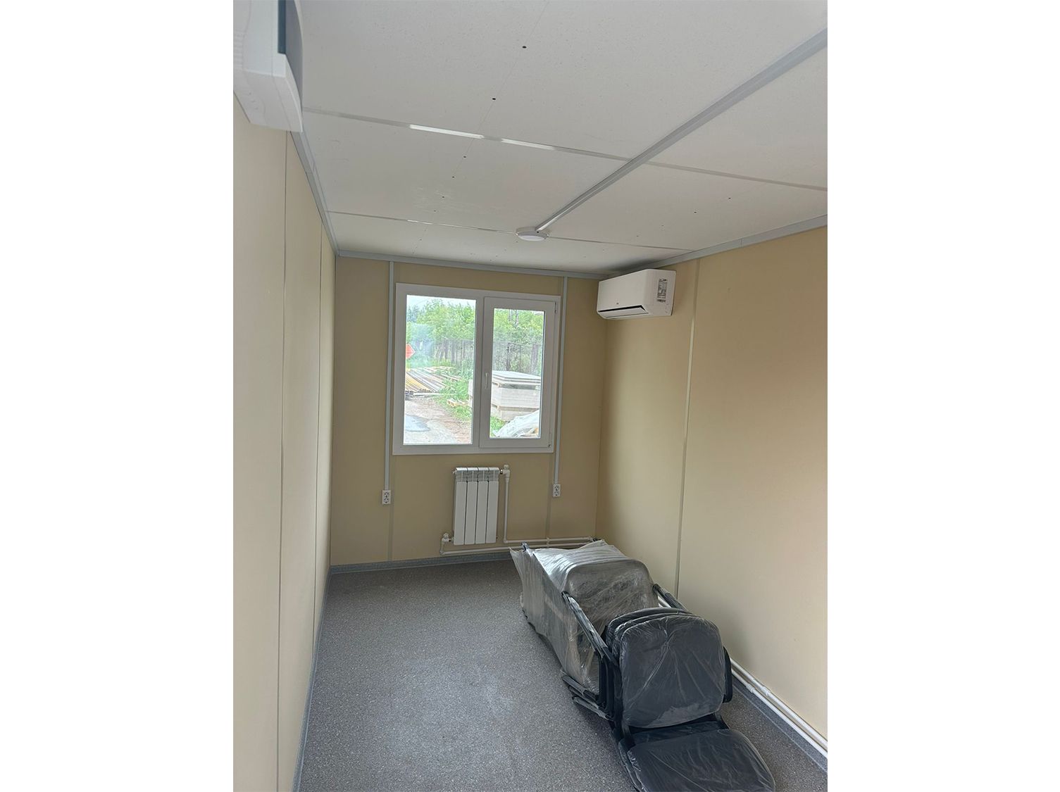 Каркас:Металлический, сварнойКровля:Односкатная. Профилированный лист МП20, с полимерным покрытиемУтепление:Потолок, стены, пол: минеральная плита. Толщина – 150 мм. Паро-гидроизоляционная пленка «Изоспан»Пол:Оцинкованный листПароизоляция тип «В»Доска 25х100 ммПлинтус ПВХЛинолеум п/коммерческийЦСП 16 ммУтепление 150 ммЭлектропроводка:Выключатель одноклавишный – 1 штСветильник светодиодный – 3 штУложен в ПВХ кабель-канал (наружным способом)Розетка двухместная – 5 штКабель медный ВВГнг 3,0 х 2,5 мм (розетки)Автоматический выключатель 16А – розеткиАвтоматический выключатель 10А – освещениеКабель медный ВВГнг 3,0 х 1,5 мм (освещение)Отопление:Биметаллические радиаторы – 3 штРазмеры (Д х Ш х В):8.0 х 2.4 х 2.7Масса:Не более 4000 кгОтделка:Наружная: Профилированный лист С-8, с полимерным покрытием.Внутренняя: Стены: СМЛО. Потолок: СМЛООкраска:Каркас: грунт-эмаль по металлуОкна:ПВХ 1200х1200 мм, двухкамерный стеклопакет, поворотно-откидное – 1 штКондиционирование:Сплит-система – 1 штПока нет комментариев