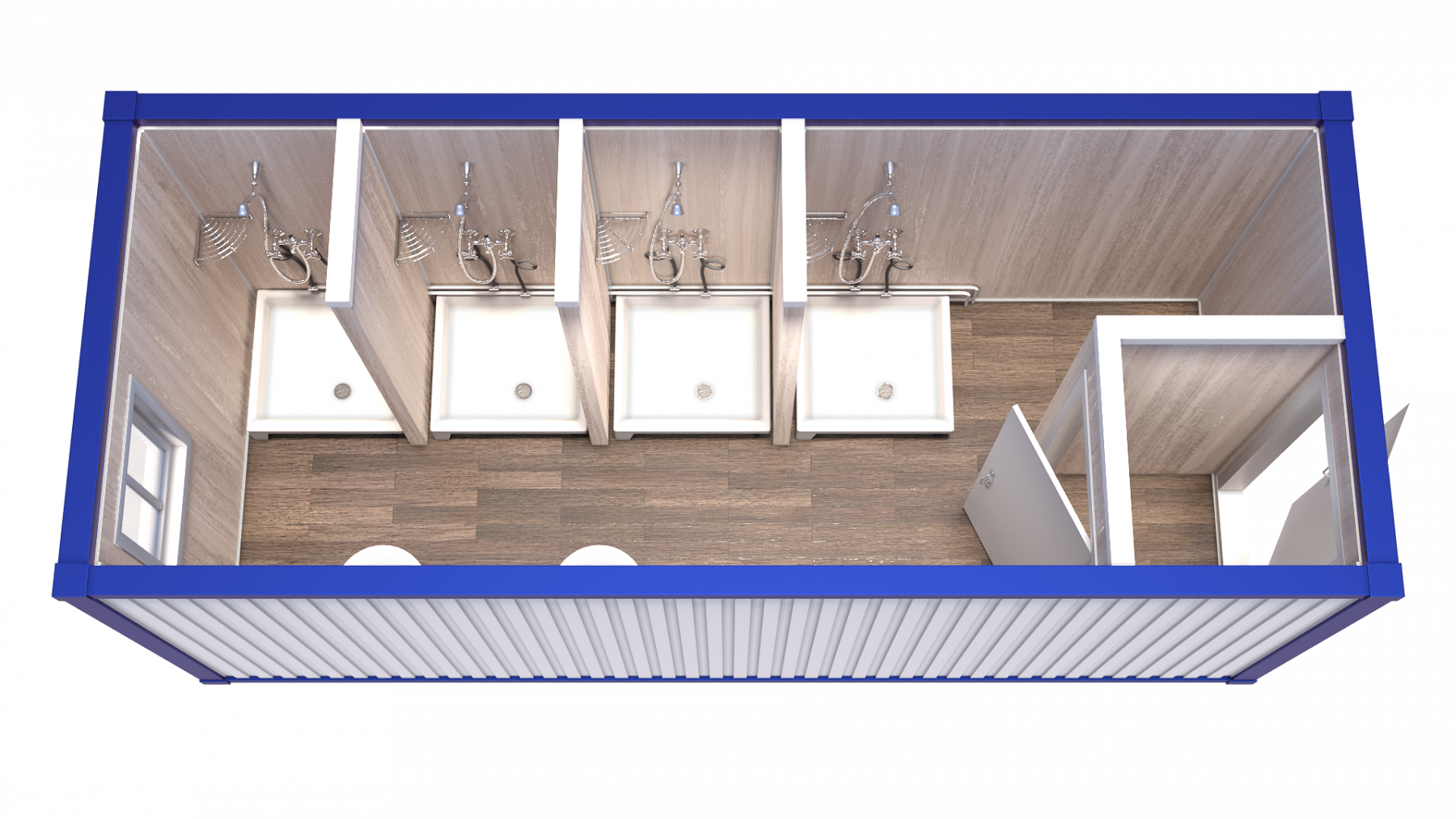 Раковина с пьедесталом и смесителем – 2 шт. Душевой поддон с лейкой и шторкой – 4 шт. Перегородка ЛСДП – 4 шт. Подключение к ХВС и ГВС – централизованное Вывод канализации наружу, место вывода – по согласованию с заказчиком. |