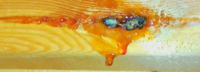 Для защиты деревянных элементов от повторного появления смолы применяют специальные лаки и краски. Они создают на поверхности плотную пленку, которая препятствует выделению смоляных веществ.