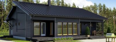 Отделка фасада финских каркасных домов может быть выполнена из различных материалов. Часто используется деревянная вагонка или блок-хаус, которые обрабатываются защитными составами. Также применяется штукатурка по утеплителю или облицовка кирпичом.