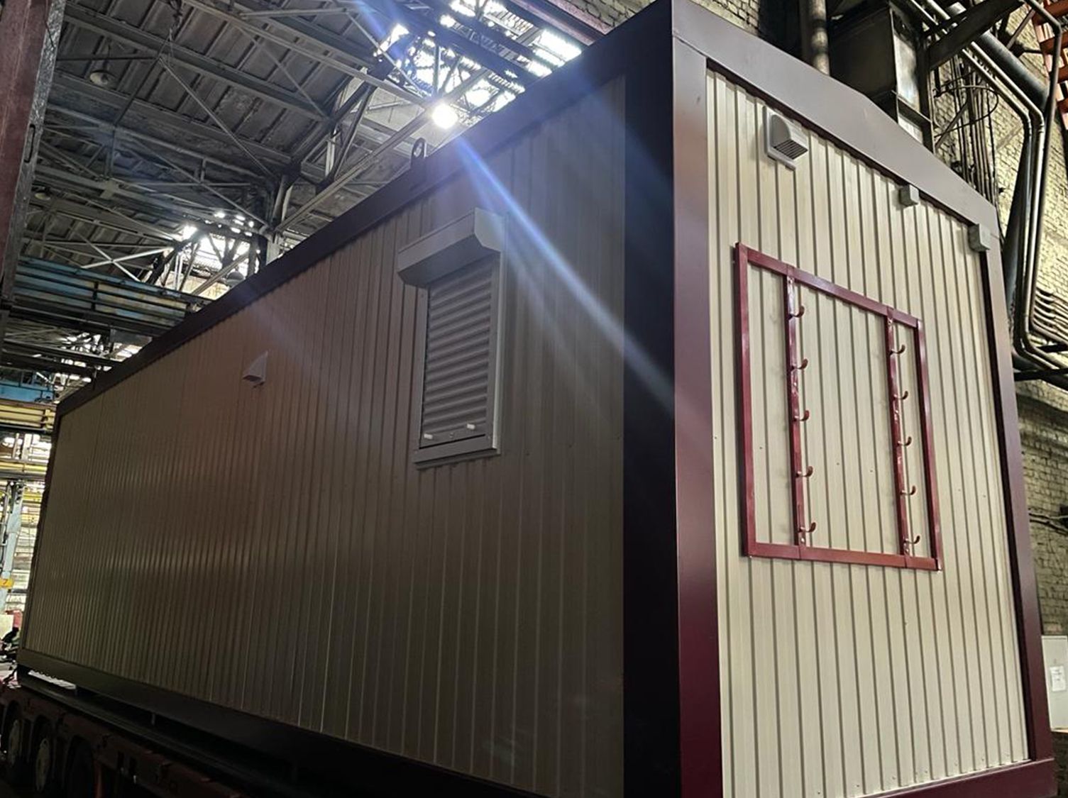 Каркас:Металлический, сварнойКровля:Двухскатная, трапециевидная, сварная. Металлический лист 1.5 ммУтепление:Потолок, стены : минеральная плита. Толщина – 15 0 ммПаро - гидроизоляционная пленка «Изоспан»Пол: пенополистирол экструзионный с добавлением антипиренов, само затухающий, относящийся к группе Г1 - слабо горючих материалов толщина утеплителя 150ммСтыки утеплены негорючей монтажной пеной. Класс горючести - НГПол:Доска 25х100 ммПлинтус ПВХЦСП 16 ммМеталлический лист , 1.2 ммАнтикоррозионное покрытиеАвтомобильная резинобитумная мастика ГФ021 в 2 слояУтепление 15 0 мм. Пароизоляция тип «В»Линолеум п/коммерческийВходная группа:Металлическая дверь заводского изготовления (Россия), с врезным замком, доводчиком и ручкой прижимом. 87 0х20 7 0 мм – 1 штПерегородка:Перегородка с ламинированной МДФ дверью – 3 штРазмеры::9.0 х 2. 45 х 2. 8 (3.0)Отопление:Биметаллические радиаторы – 5 штРазводка ПВХ трубМасса:Не более 50000 кгОтделка:Наружная: Профилированный лист С8, с полимерным покрытием, RAL 3005Внутренняя: Профилированный лист С8, с полимерным покрытием, RAL 3005Окраска:Каркас: грунт - эмаль по металлуОкна:ПВХ, 90 0 х 110 0 мм, трёх - камерный профиль, двухкамерный стеклопакет, поворотно - откидное – 2 штМоскитная сетка – 2 штРольставни механически – 2 штПока нет комментариев