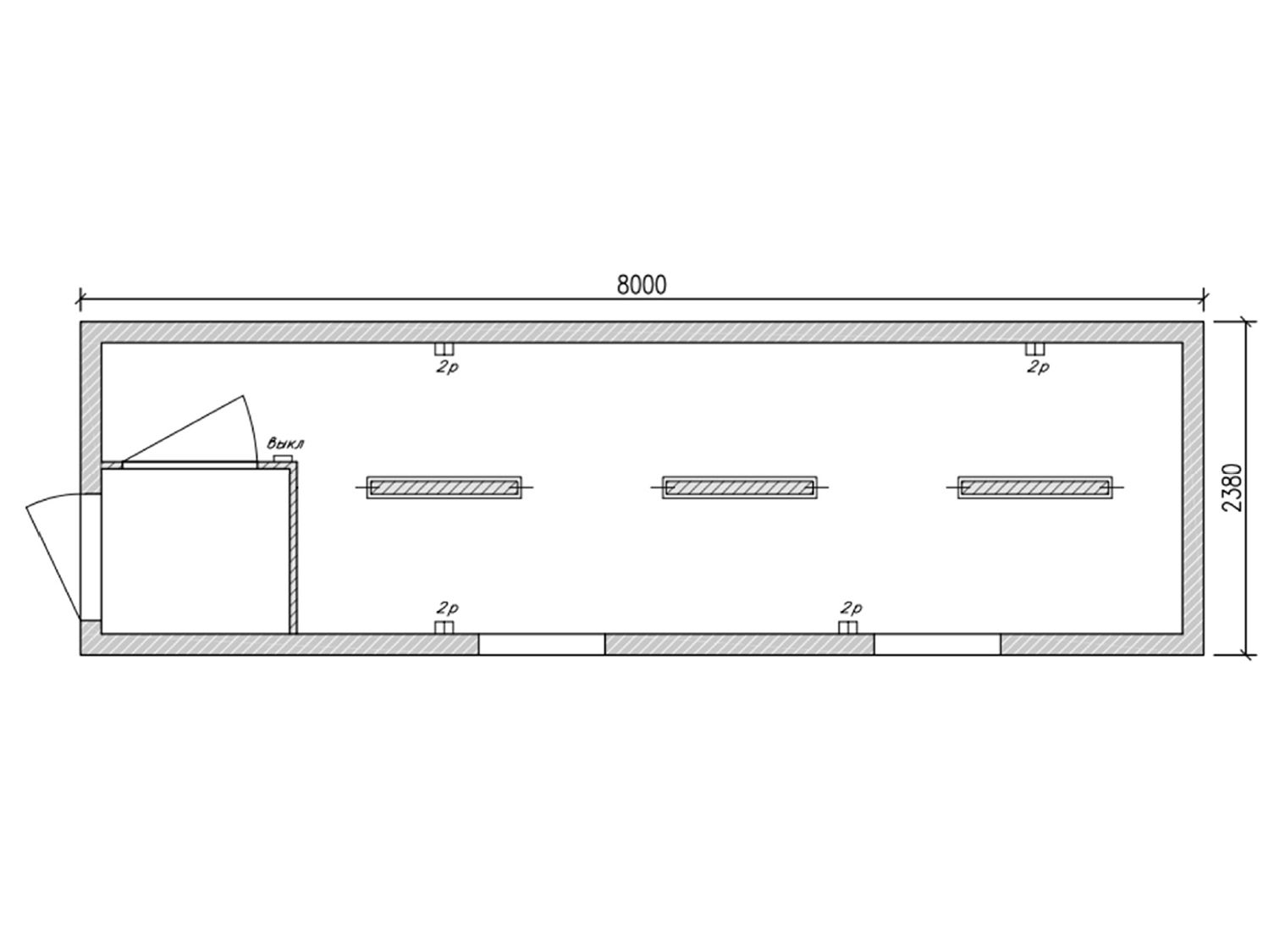Д х Ш х В: 6.0 х 3.0 х 2.4 м. |